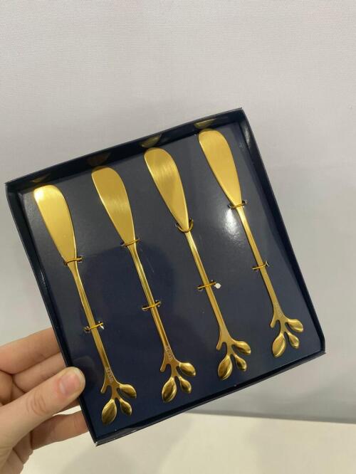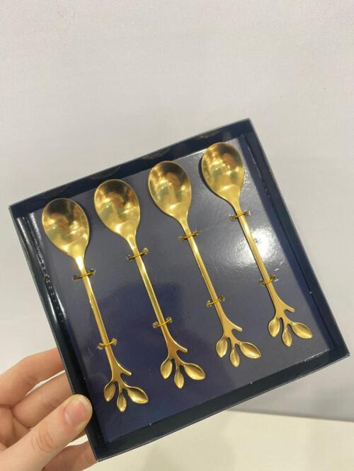 CJ 4 COLHERES ACO INOX P/CHA LEAVES DOURADO