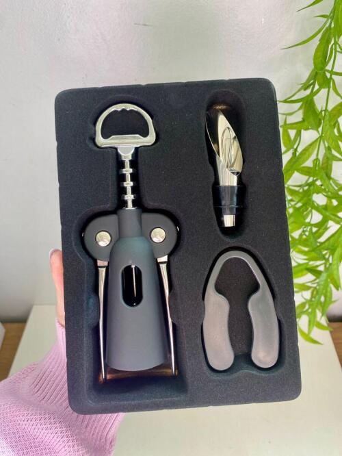 CJ 3 PECAS PARA VINHO EM LIGA DE ZINCO E PLASTICO - 5996