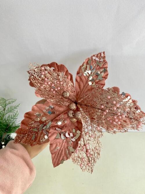 FLOR DE NATAL RENDADA ROSE GOLD 26X30CM