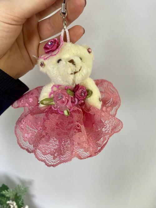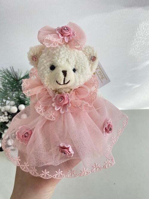 URSO DE PELUCIA C/VESTIDO 13CM ROSA
