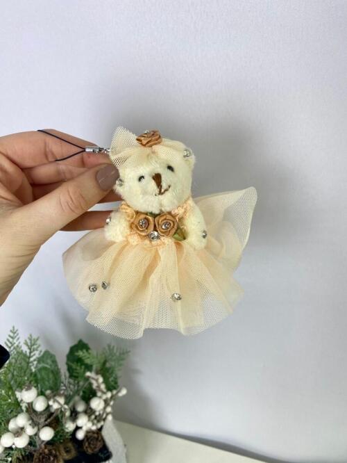 URSO DE PELUCIA C/VESTIDO 8CM BEGE