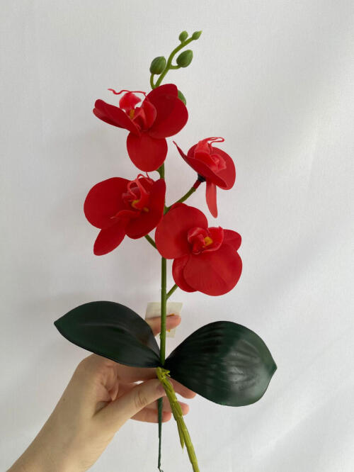 HASTE ORQUIDEA 3D C/FOLHA VERMELHA