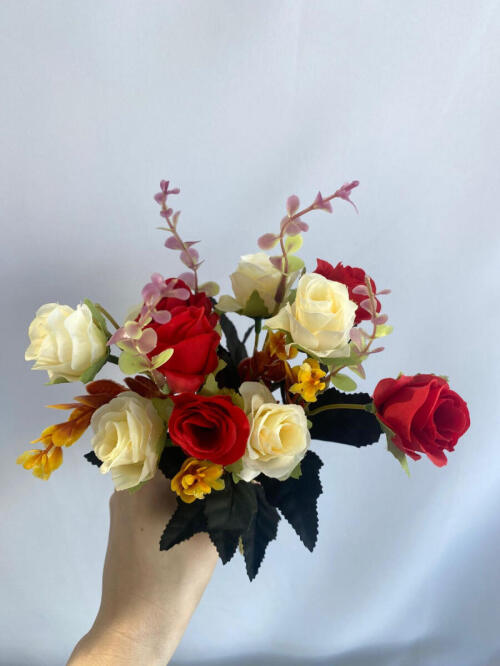 MINI BUQUE ROSINHA VERMELHA C/BRANCO X12- 1091