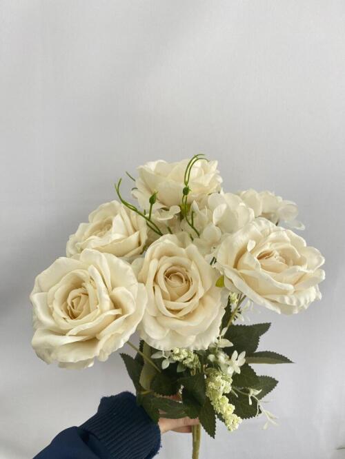 BUQUE MISTO COM ROSAS X9 - 47CM- 2624 - CREME