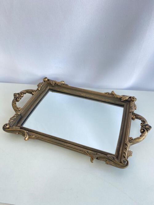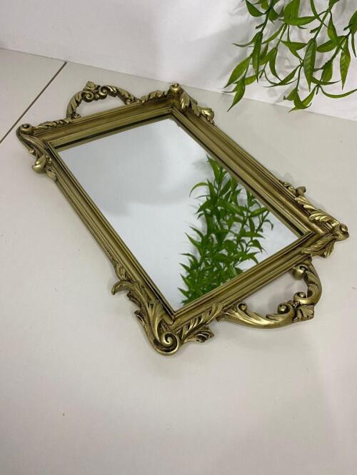 BANDEJA DE METAL COM ESPELHO DOURADA 15CM X 25CM X 4CM