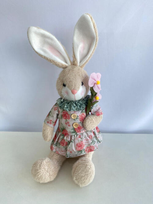 COELHO DE TECIDO BEGE FLORAL- 41CM - 19697